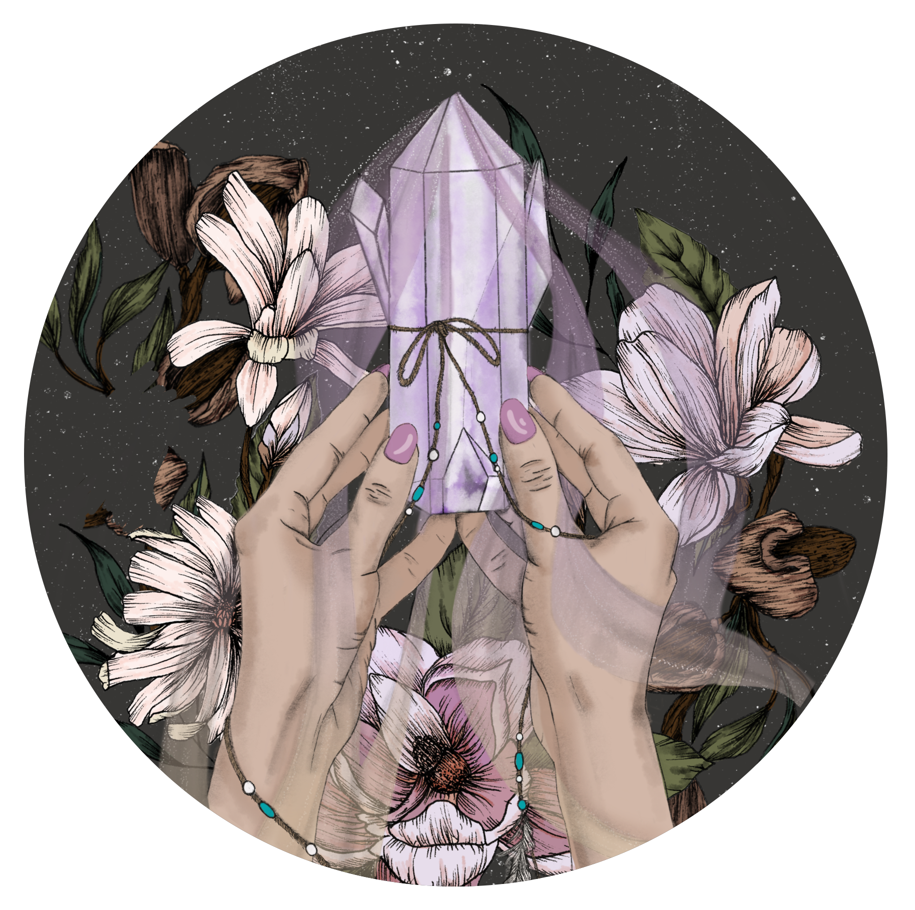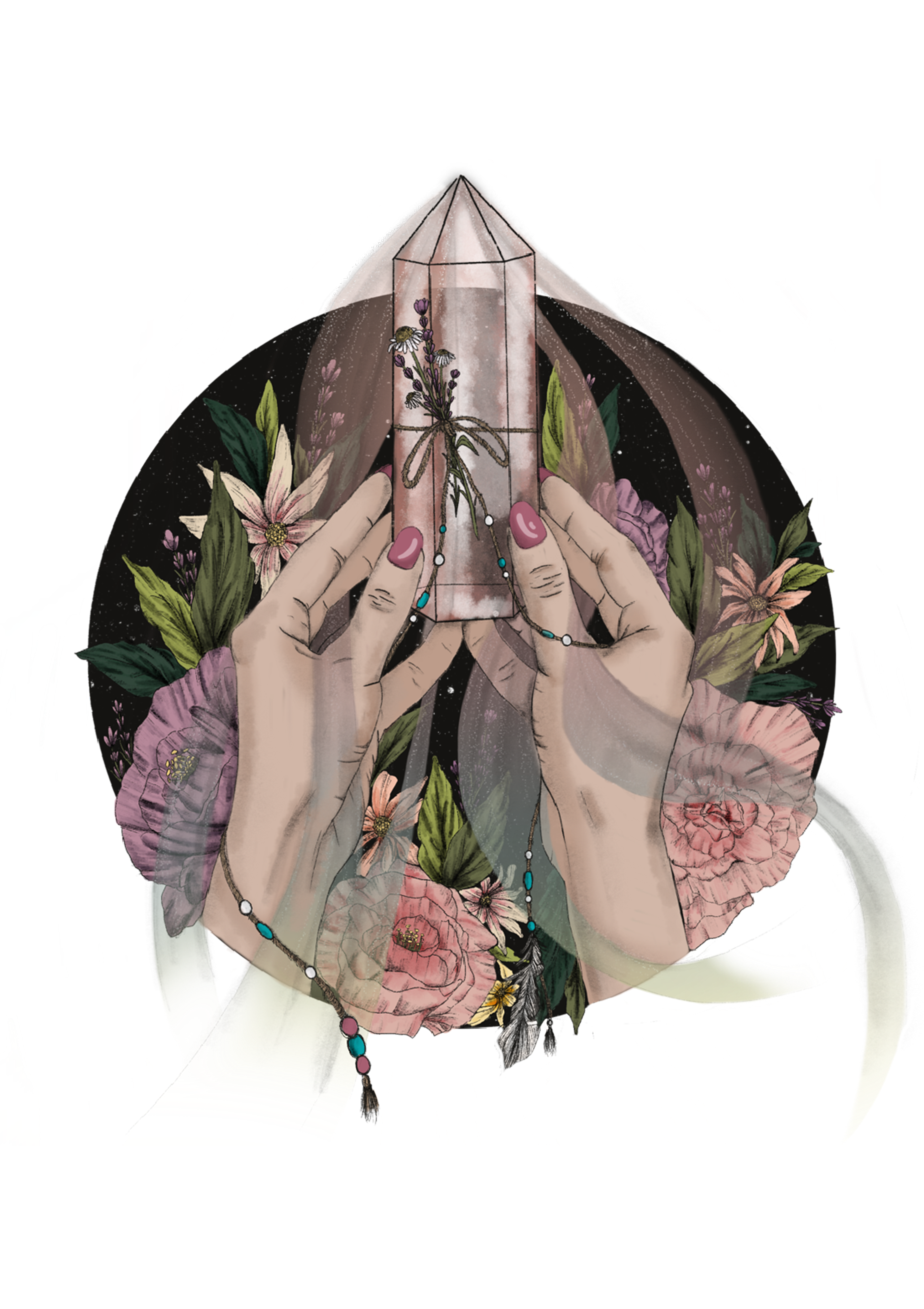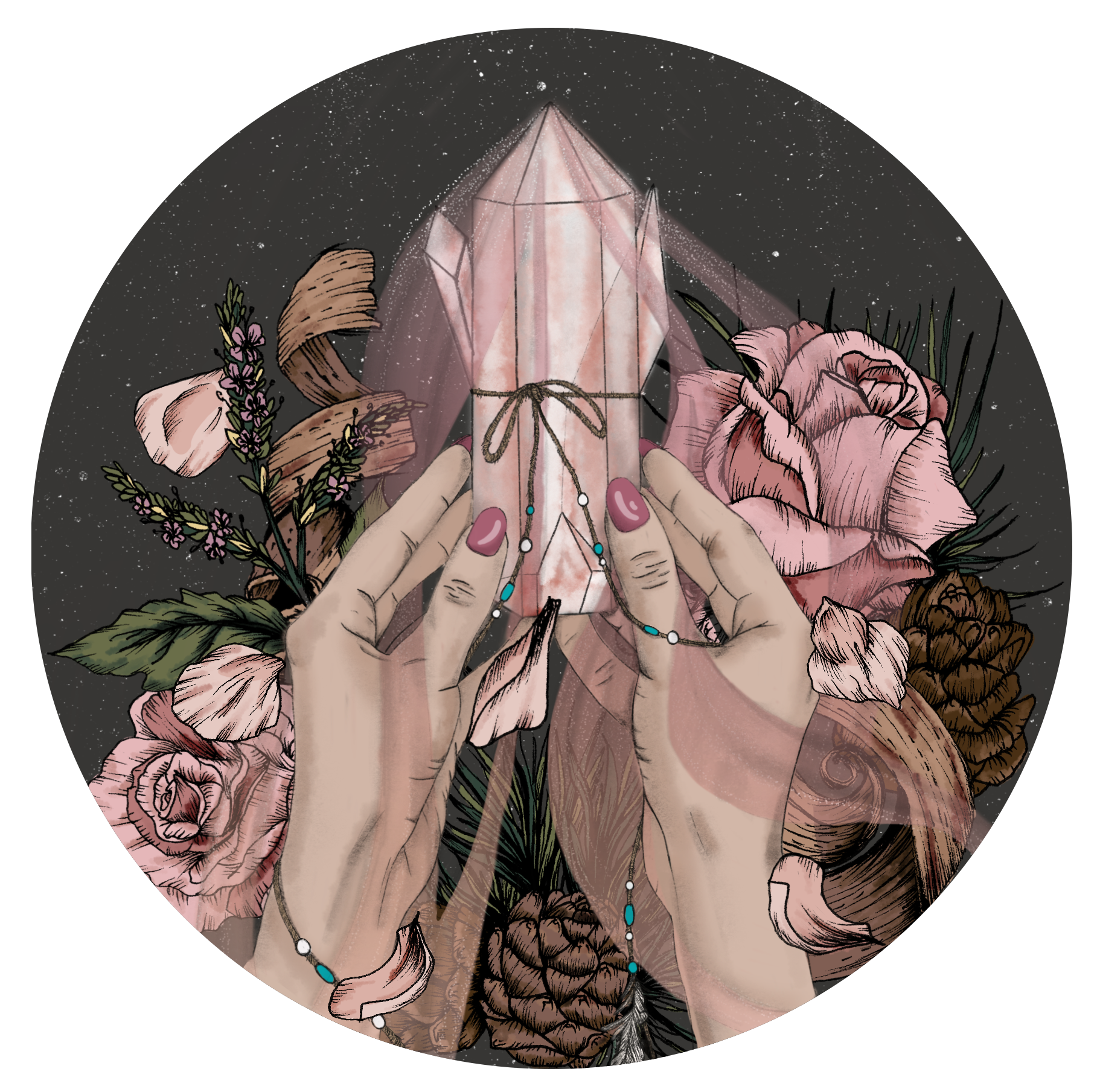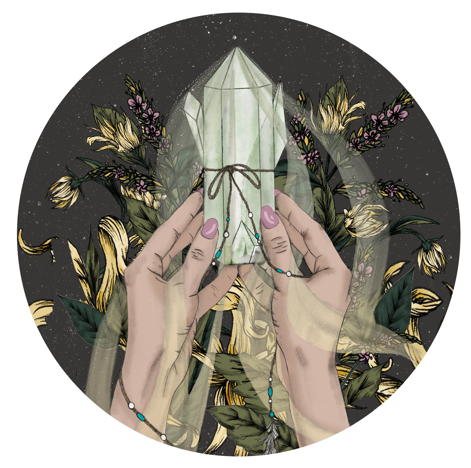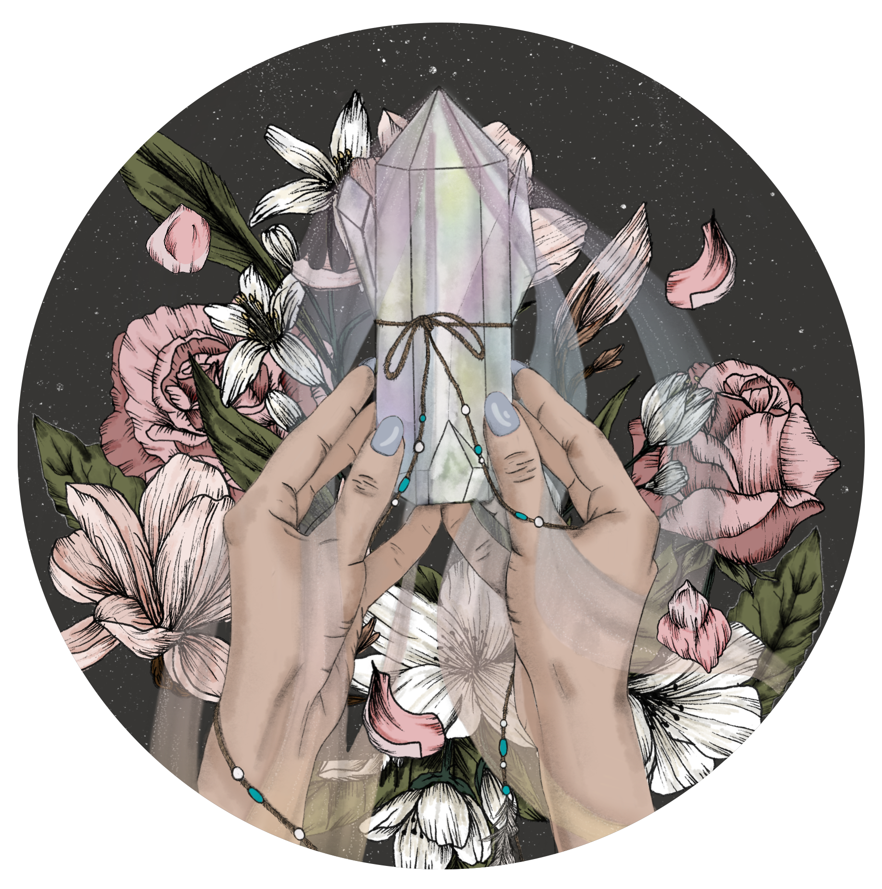 Drawn and coloured using Procreate in a few crystal colourway variations.